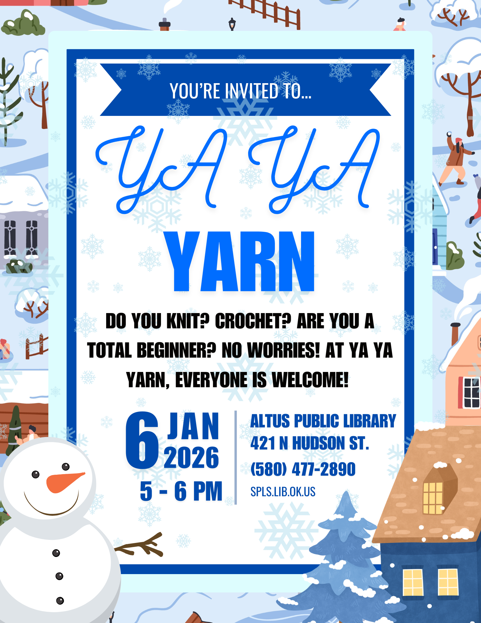 You’re invited to Ya Ya Yarn at the Altus Public Library!
