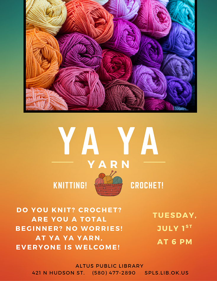 Calling all yarn lovers! Whether you knit, crochet, loom, or just love a good tangle of thread — our Ya Ya Yarn group is the perfect place to connect, create, and unwind.